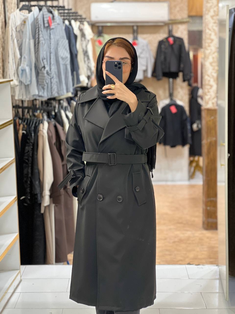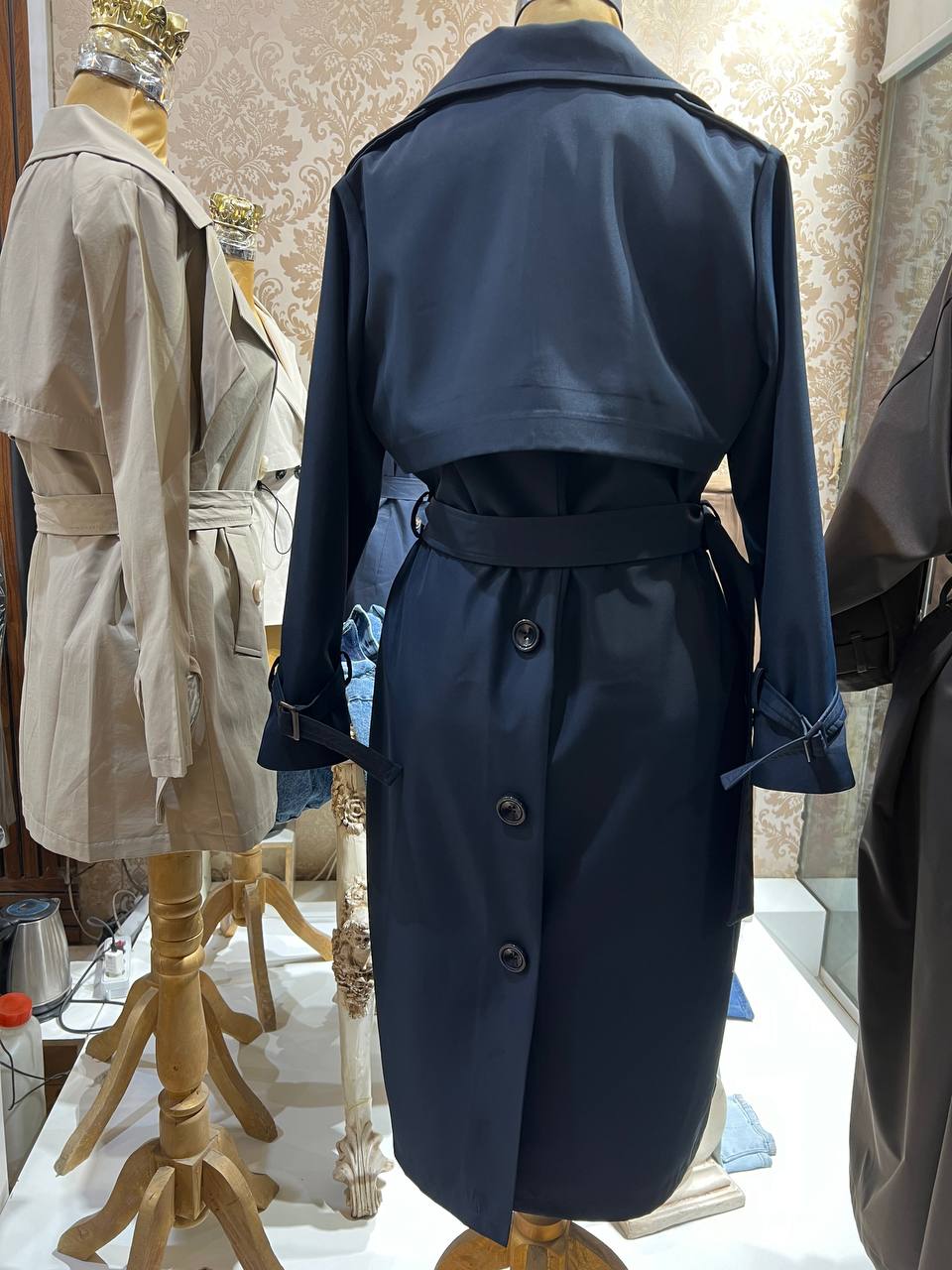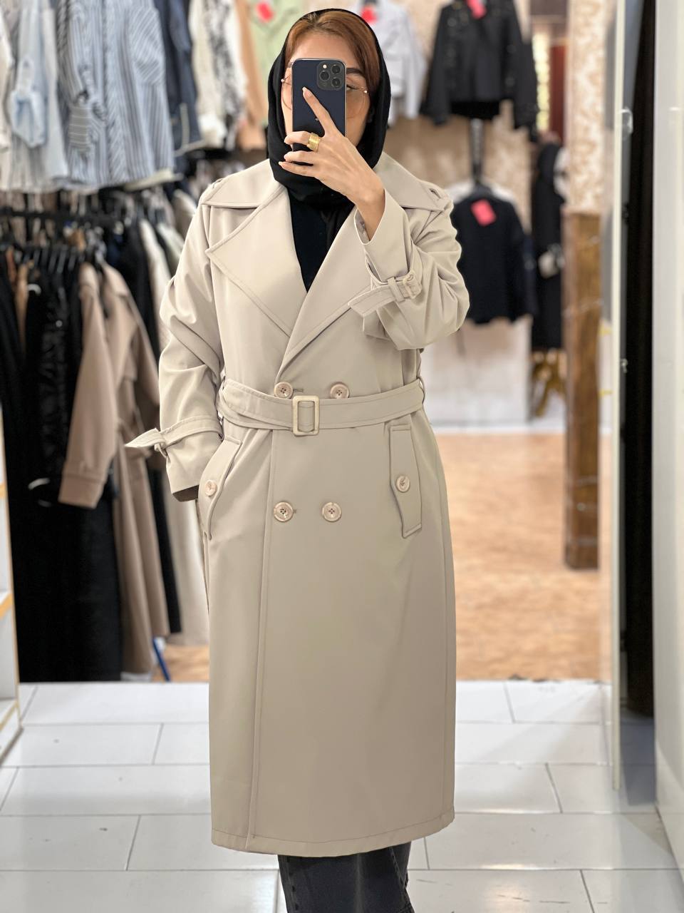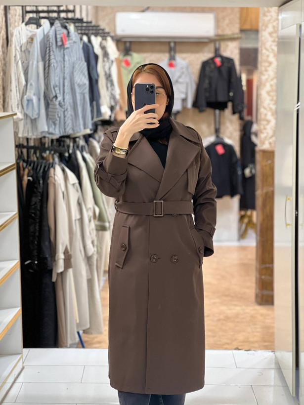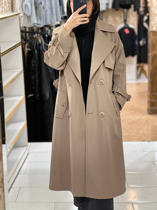 مانتو بلند ترنچ کت (Trench Coat) آس مدل شیما - جنس سانتانا آسترکشی کامل