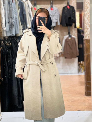 مانتو بلند ترنچ کت (Trench Coat) آس مدل شیما - جنس سانتانا آسترکشی کامل